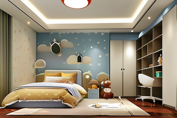 装饰与个性化:儿童房的装饰应该富有创意,可以挂上孩子的作品、摆放一些玩具和书籍,可以根据孩子的喜好进行个性化装饰。
